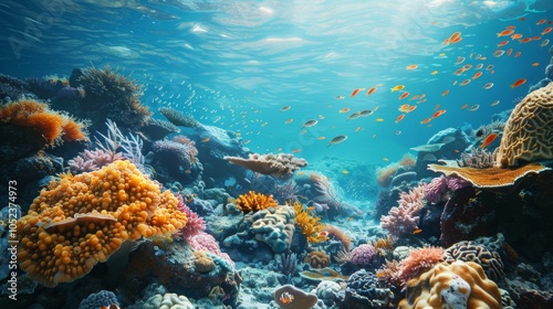 Naklejka premium Vibrant Coral Reef with Diverse Marine Life