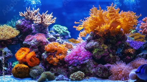 Obraz premium Vibrant coral reef with diverse marine life, high quality
