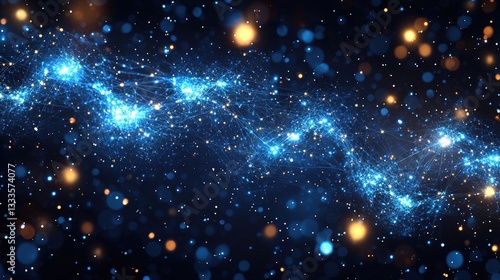 Naklejka premium Vibrant Cosmic Background with Dazzling Stars and Soft Glowing Particles in a...