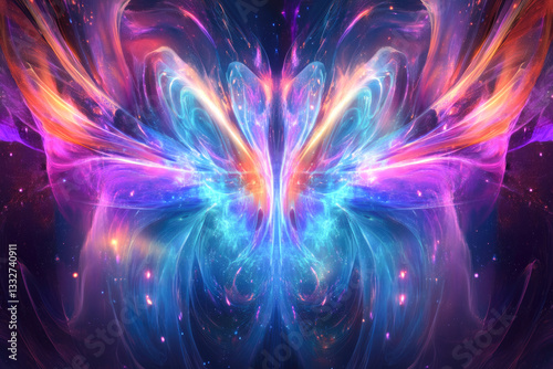 Fototapeta premium Vibrant cosmic butterfly nebula with galactic color explosion in deep space