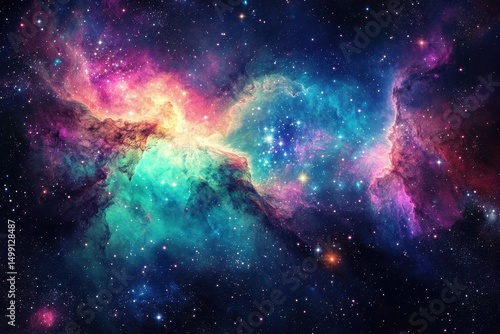 Naklejka premium Vibrant cosmic canvas displays dynamic hues of green, blue, and pink...