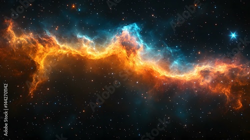 © Prokopchuk, Obraz premium Vibrant cosmic cloud and many stars creating a mesmerizing outer space environment for scientific or astronomical illustration