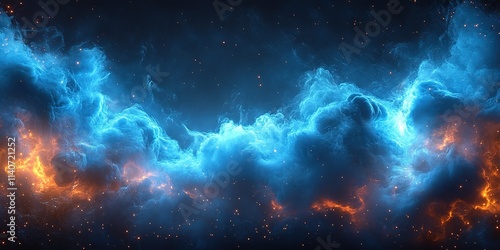 Obraz premium Vibrant cosmic cloud with blue and orange hues against a starry backdrop...