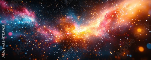 © Georgii, Naklejka premium Vibrant cosmic display with colorful nebula and radiant star clusters