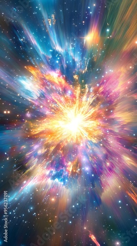 Naklejka premium Vibrant cosmic explosion radiating energy and light in a stunning display of...