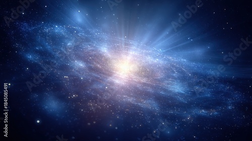 Fototapeta premium Vibrant Cosmic Galaxy Bursting with Light and Nebula Clouds, Shining Star Radiating Across Dark Space