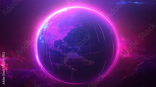 Obraz premium Vibrant Cosmic Globe with Neon Effects