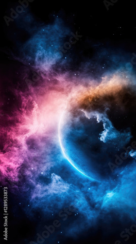 © Елена Сорокина, Fototapeta premium Vibrant cosmic landscape bathed in pink and blue neon hues