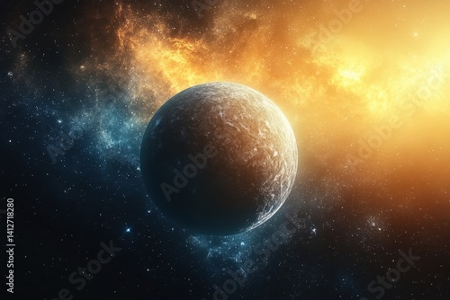 Obraz premium Vibrant cosmic landscape showing a planet surrounded by colorful celestial...