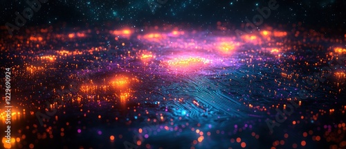 Fototapeta premium Vibrant cosmic landscape with glowing particles in space