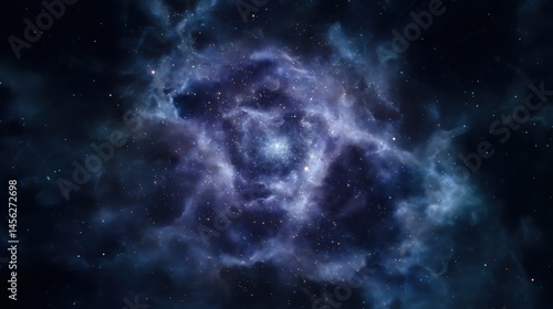 © NTGUILTY, Obraz premium Vibrant cosmic nebula glowing in deep space with stars and a central area for creative messaging