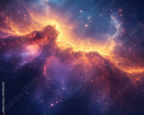Fototapeta premium Vibrant cosmic nebula illuminated by stellar formations in deep space