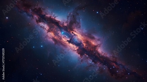 Fototapeta premium Vibrant cosmic nebula in deep space with distant stars