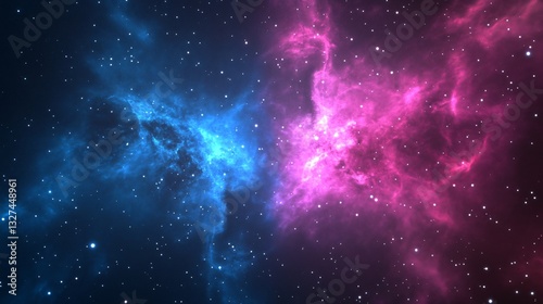 © Wannapha, Fototapeta premium Vibrant cosmic nebula, swirling blue and pink gas clouds, space exploration theme, suitable for science fiction backgrounds.