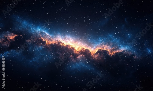 Obraz premium Vibrant cosmic nebula with bright stars and glowing dust clouds illustration