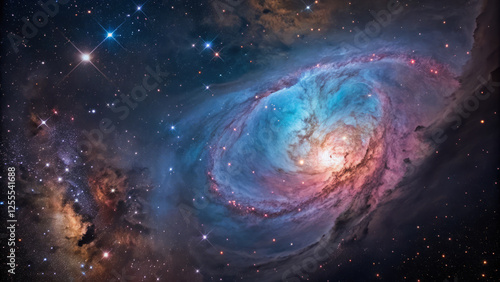 Fototapeta premium vibrant cosmic nebula with colorful gas clouds and bright stars