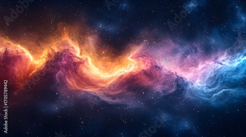 Fototapeta premium Vibrant cosmic nebula with colorful gas clouds and scattered stars in deep space