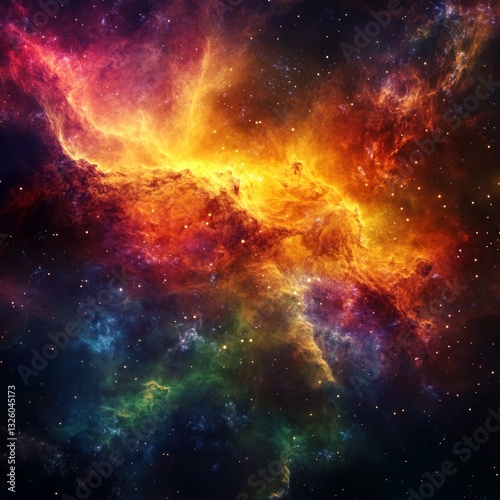 Fototapeta premium Vibrant Cosmic Nebula with Fiery Colors and Dazzling Stars
