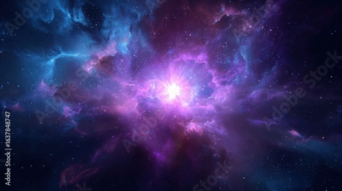 Naklejka premium Vibrant Cosmic Nebula with Shimmering Light: A Captivating Galaxy Background for Science and Space Exploration