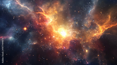 Fototapeta premium Vibrant Cosmic Nebula with Stars and Bright Celestial Light Effects