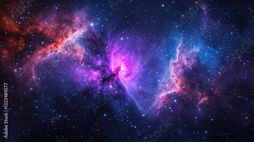 © Thuntaree, Naklejka premium Vibrant Cosmic Nebula with Stars and Colorful Gas Clouds