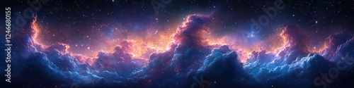 © Mariya, Naklejka premium Vibrant Cosmic Nebula with Stars in Night Sky fantastical outer space background