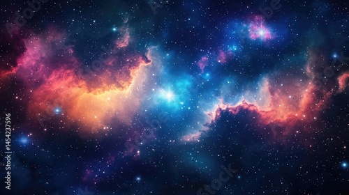 Fototapeta premium Vibrant cosmic nebulae display with numerous stars.