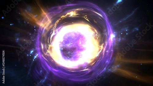 Obraz premium Vibrant cosmic portal with swirling energy and light in deep space.