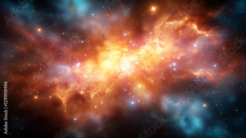 Fototapeta premium vibrant cosmic scene featuring nebula with bright orange and yellow hues,...