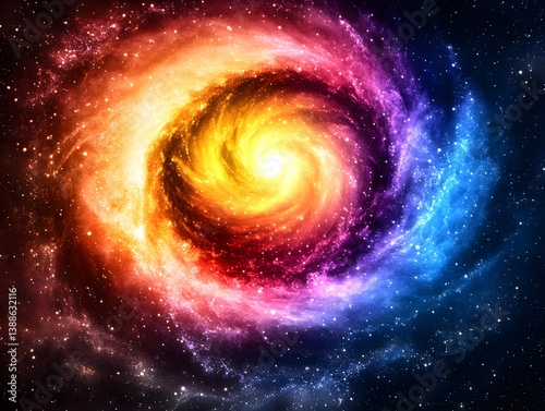 Fototapeta premium Vibrant Cosmic Spiral Galaxy Nebula, Colorful Space Art