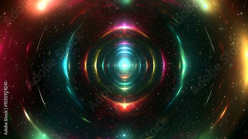 © Borasca, Naklejka premium Vibrant cosmic vortex with radiant light in starry space