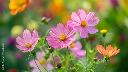Fototapeta premium Vibrant Cosmos Flowers Blooming in a Colorful Garden Landscape