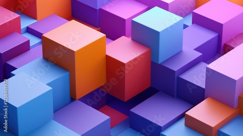 Obraz premium Vibrant 3D Abstract Render of Colorful Blocks and Cubes in Harmonious...