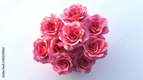 © Jakkarin, Obraz premium Vibrant 3D Cluster of Pink Roses with Intricate Textures on White Background