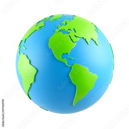 Fototapeta premium Vibrant 3D Earth globe model showcasing continents in bright green and blue perfect for