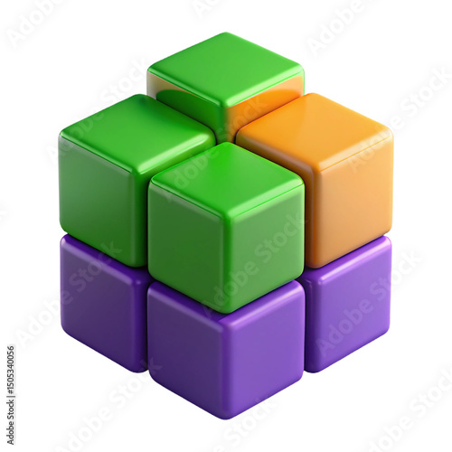 Fototapeta premium Vibrant 3d illustration of colorful cubes stacked in a geometric abstract configuration