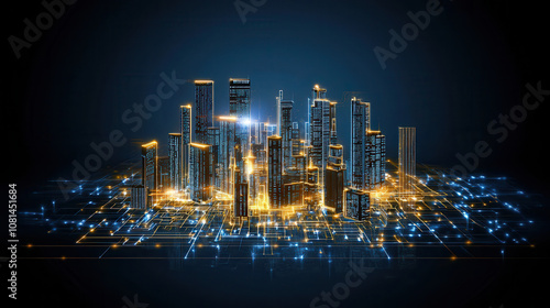 Fototapeta premium vibrant 3D isometric cityscape featuring smart grid design with glowing...