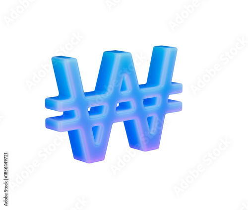 © Hammad, Fototapeta premium Vibrant 3D Korean Won currency symbol glowing with blue and purple gradients. 3d illustration