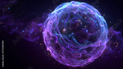 Obraz premium Vibrant 3d sphere of purple and blue waves and glowing particles. Abstract...