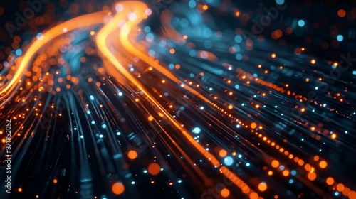 Naklejka premium Vibrant data cables transferring information in the background for enhanced...