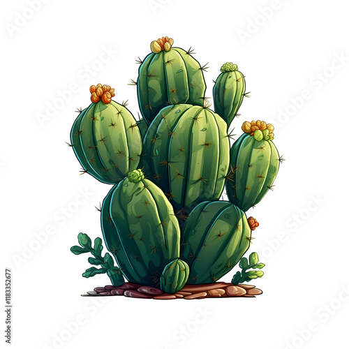 Naklejka premium Vibrant Desert Cactus in Bloom . A Botanical Illustration