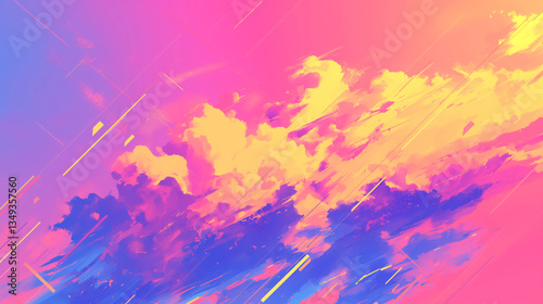 © imagemir, Obraz premium Vibrant digital artwork showcasing pink and orange abstract clouds in a dreamy sky.