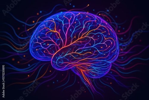 Fototapeta premium Vibrant digital brain visualization with neural networks and creative thought...
