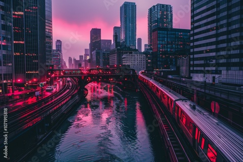 Fototapeta premium Vibrant digital cityscape with neon lights showcasing a futuristic urban environment