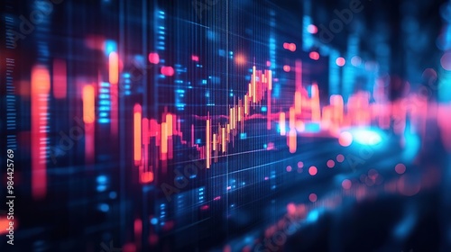 Obraz premium Vibrant digital data visualization showcasing stock market trends with...