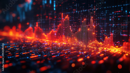 Fototapeta premium Vibrant digital data visualization with abstract graphs, glowing lines, and...