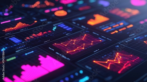 Obraz premium Vibrant Digital Data Visualization with Colorful Graphs and Charts