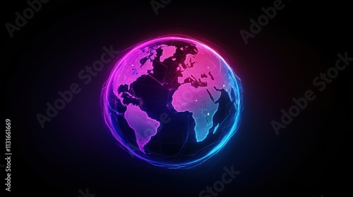 Fototapeta premium Vibrant Digital Globe with Neon Lights Representing Global Connectivity and...