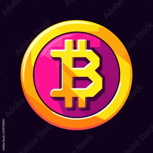Fototapeta premium Vibrant digital illustration of a Bitcoin symbol with bold colors and a modern design.