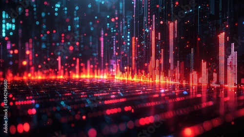 Fototapeta premium Vibrant digital landscape with glowing data streams and abstract visualizations